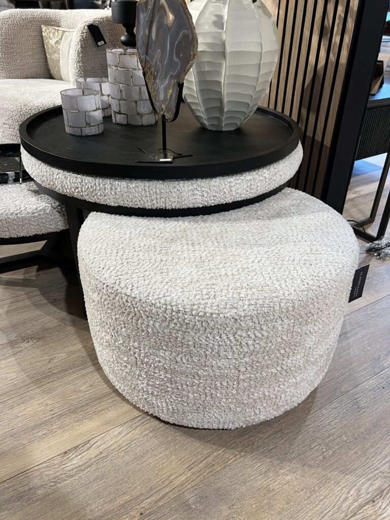 Prachtige salontafel Morgan met een heerlijke zachte gestoffeerde bovenkant is in 2 verschillende maten verkrijgbaar.