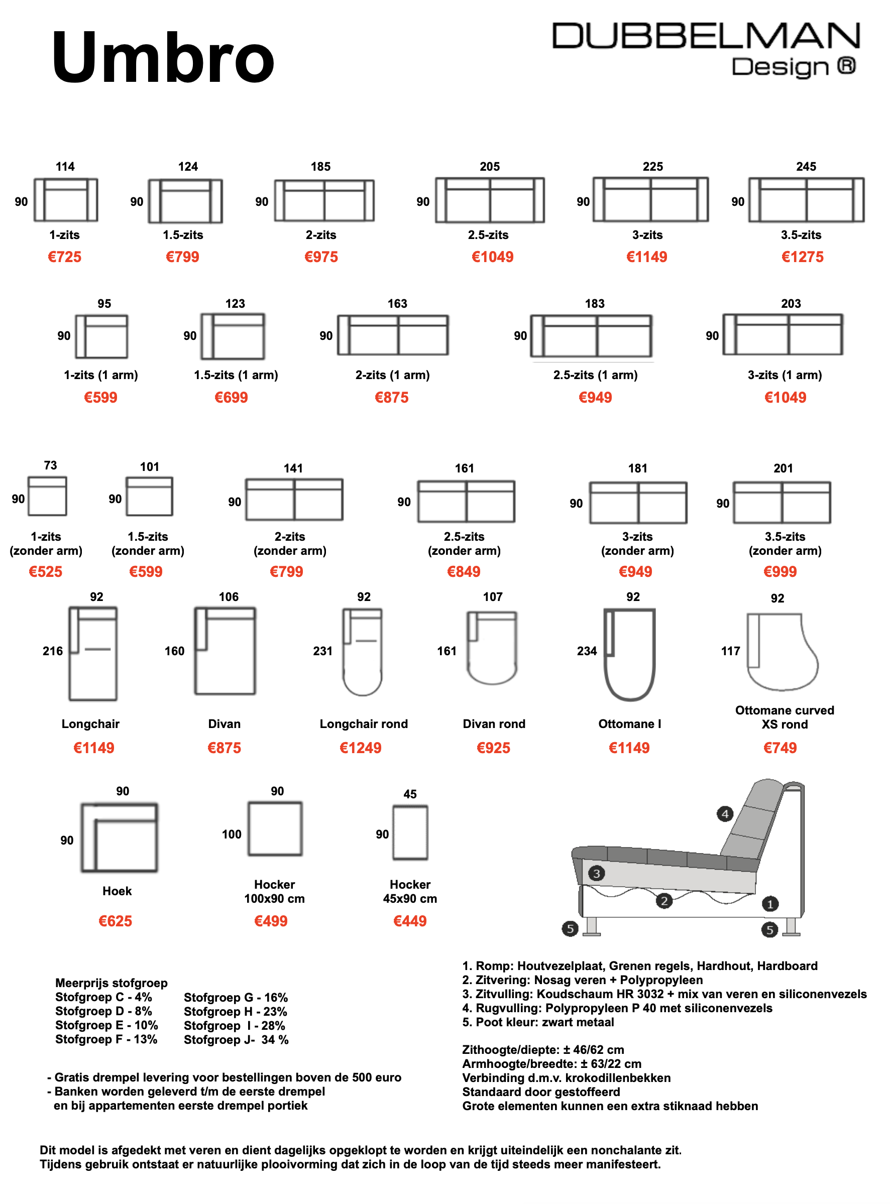 Bank Umbro (Cremona 02) – Longchair rond / 2.5-zits (zonder arm) / divan rond