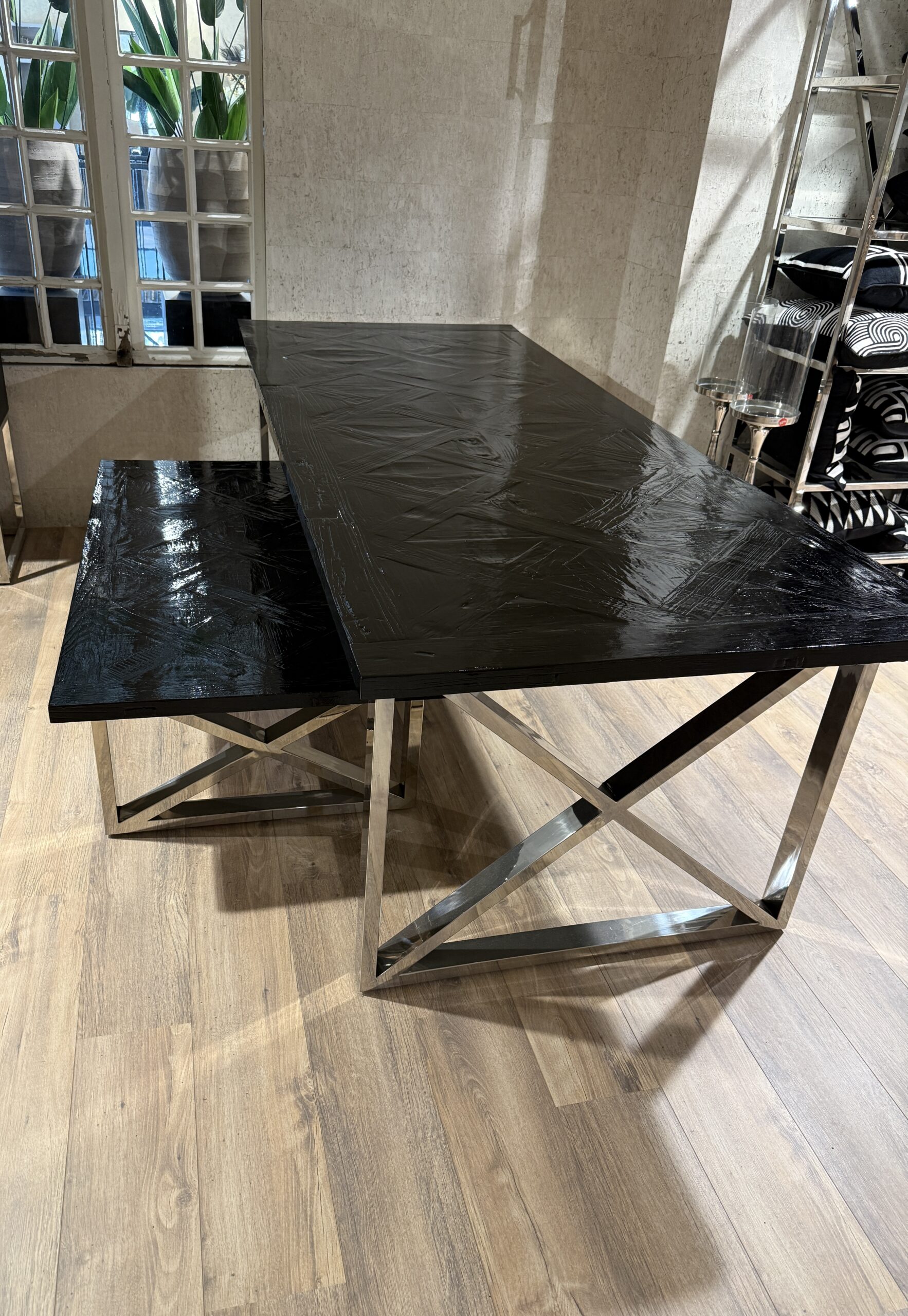 Eettafel + salontafel visgraat zwart / Showroom set / Magazijn leegverkoop