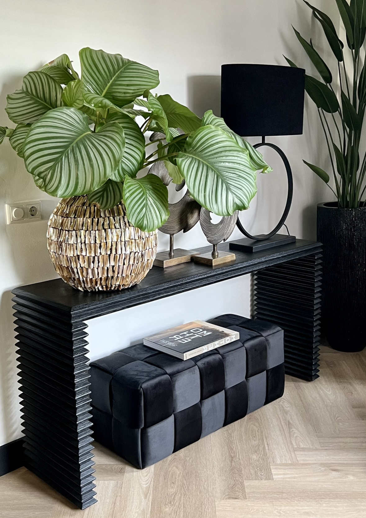 Schitterende gevlochten poef in velvet zwart (Quartz 800).