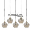 Prachtige hanglamp met 5 lampen met schitterend smoke glas.