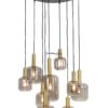 Hanglamp 5L rond antiek brons+smoke glas / 66 cm