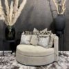 Inclusief 5 zwarte kussens in dezelfde stof als de loveseat.