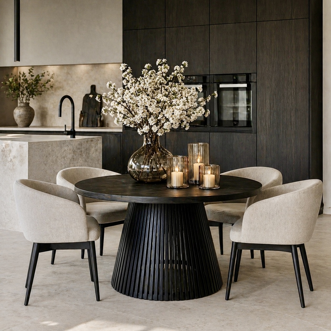 Ronde eettafel Pelle zwart eiken 120 cm / Magazijn leegverkoop