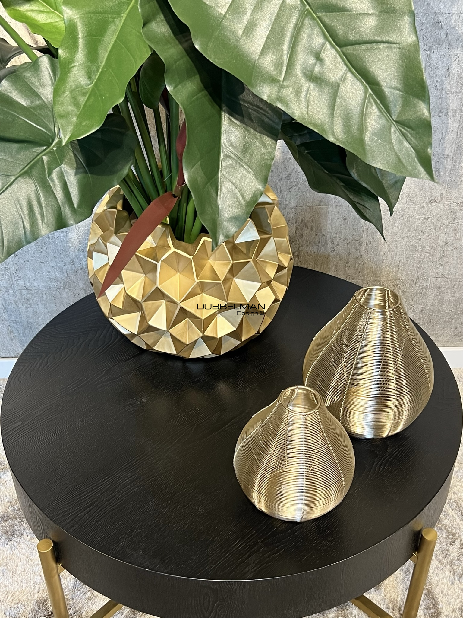Mooie salontafel uitgevoerd in black oak en brushed gold.