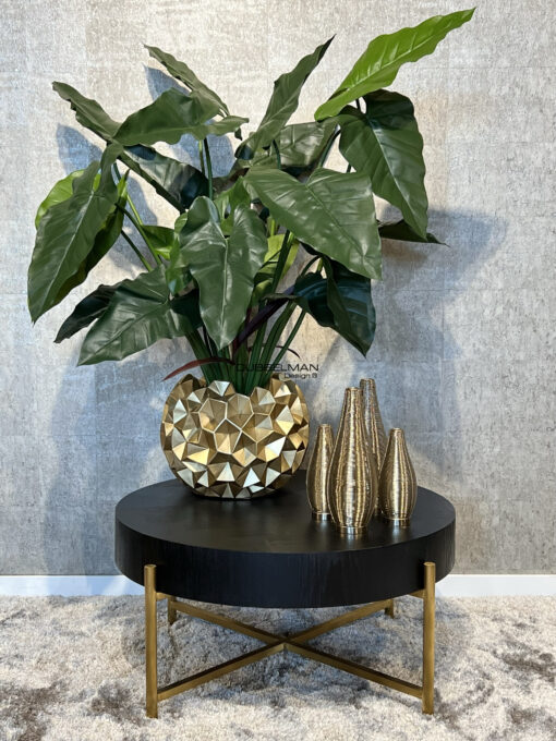 Mooie salontafel uitgevoerd in black oak visgraat met brushed gold.
