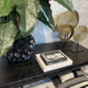 Prachtige salontafel uitgevoerd in black oak met zwart frame.