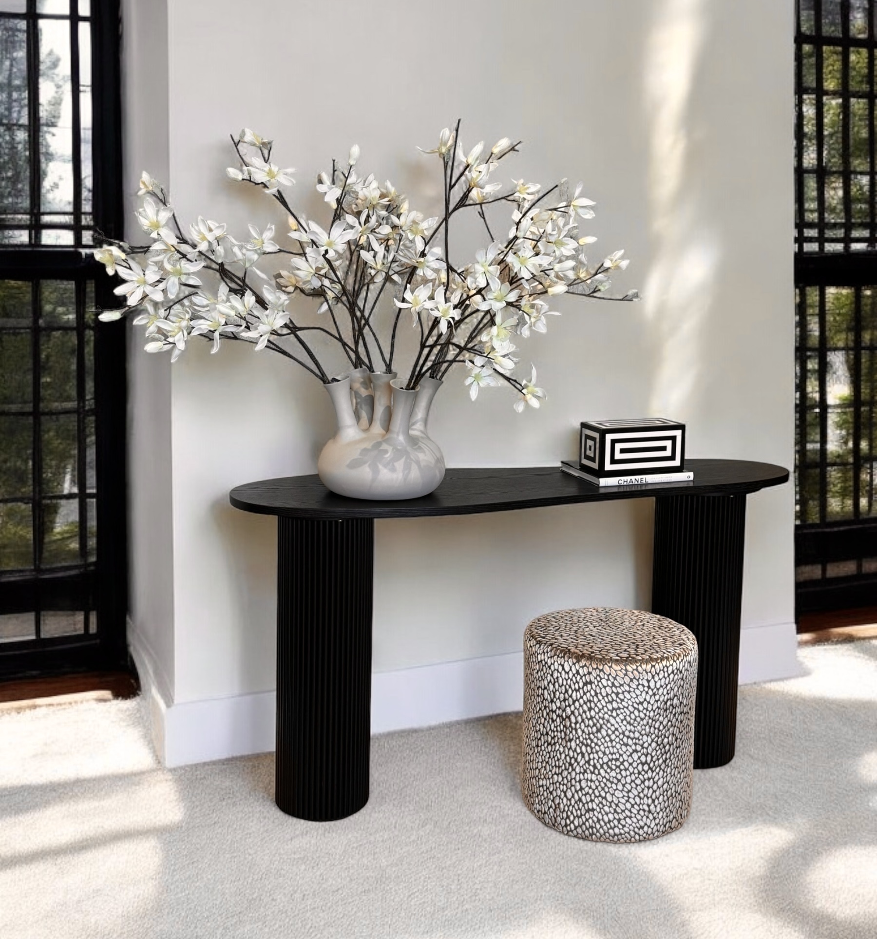 Prachtige sidetable in organische vorm uitgevoerd in zwart eiken.