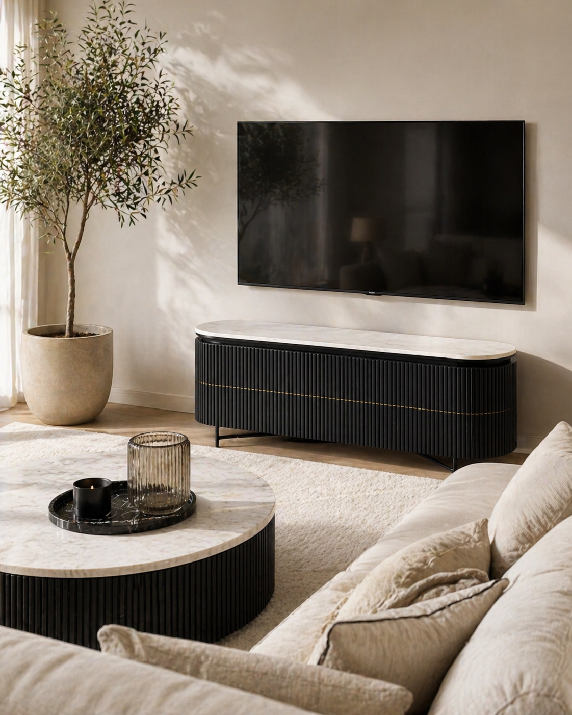 TV meubel Brett zwart mango/wit marmer / Magazijn leegverkoop